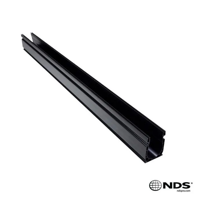NDS 6 foot Slim Channel is a 2.25 inch wide channel ideal for light-duty residential outdoor living applications such as pools, spas and pavers. Black extruded PVC channel only – available accessories include anchor clips to secure the channel to the base, versatile bottom outlet that can be placed anywhere along the line for easy installation, couplings, end cap/outlets, elbows and tees. 3 foot grates designed for superior flow capacity and easy cleaning or replacement are available in multiple colors and patterns.